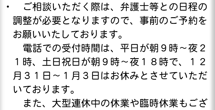 不倫慰謝料を請求された場合、焦って相手方に連絡したり、示談に応じてしまったりする前に、お早めに弁護士に相談されることをおすすめします。